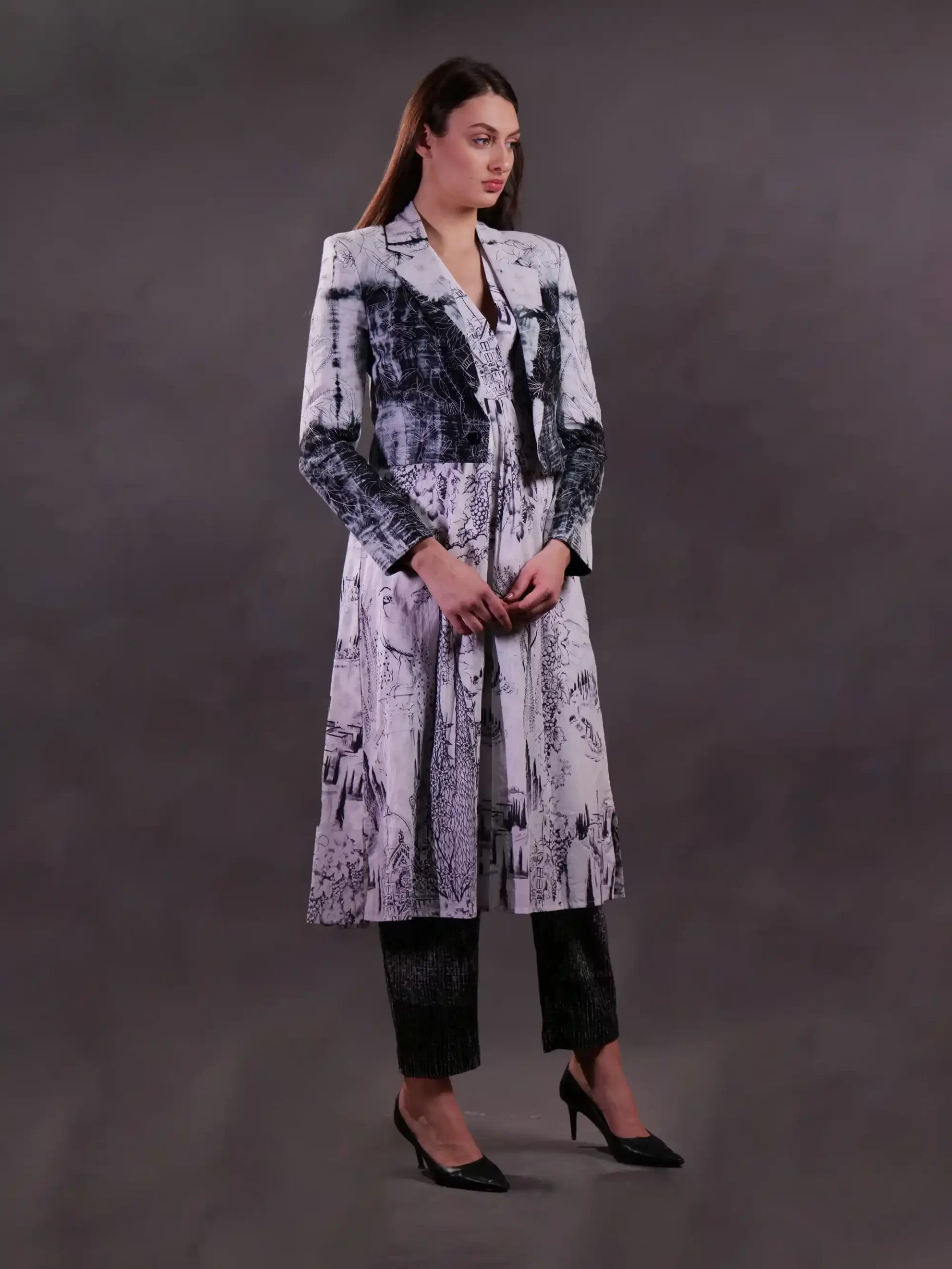 Shibori Jacket with printed western kurta & trousers